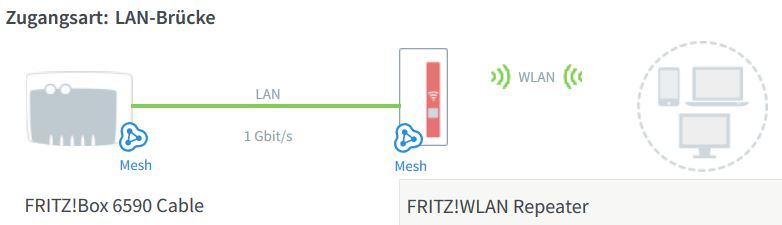 Nein, bei einer LAN-Brücke sind Router und Repeater per Kabel verbunden. Damit steht WLAN am entfernten Punkt zur Verfügung.
