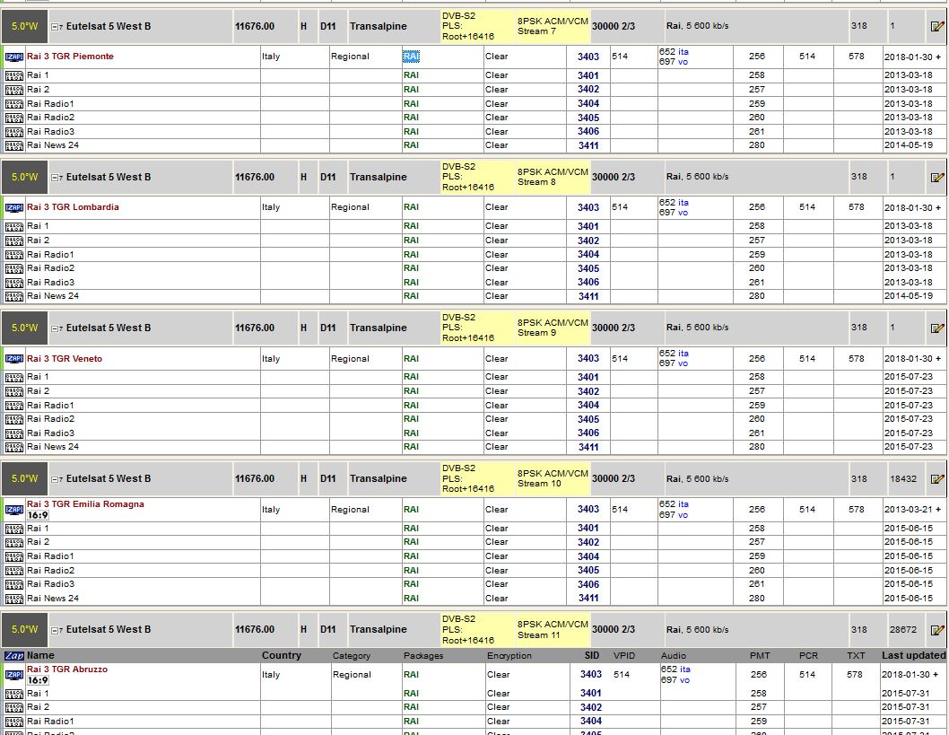 Ich habe dieses Verschwinden bei den Regionalvarianten von Rai 3 auf 5°West beobachtet. Es fiel mir auf, als ich zu Beginn der Coronakrise Rai 3 Lombardia empfangen wollte. Rai 3 wird zu bestimmten Zeiten in regionalen Varianten angeboten.