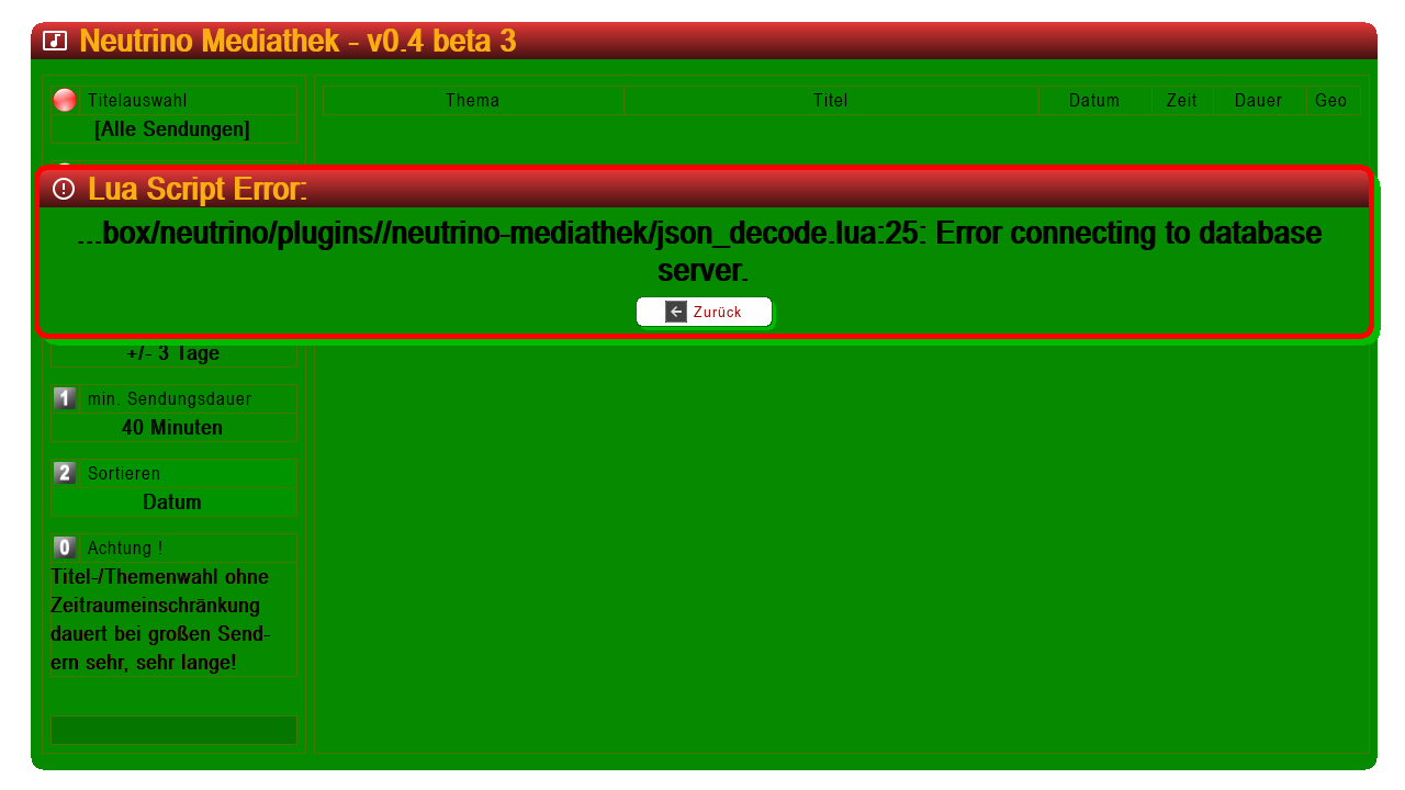 Eben mal probiert: die Fehlermeldung ist weg, aber die Datenbank ist leer (es werden keine Filme gefunden).