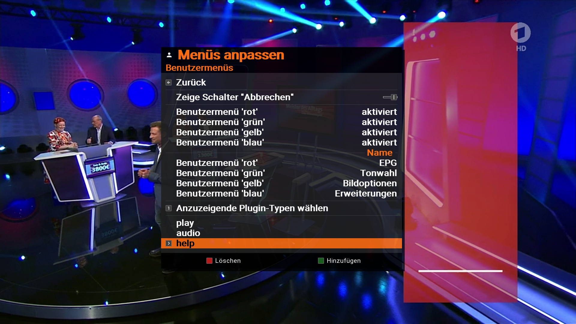 Dann unter "benutzermenü-Menüs anpassen" das Skript einer von mir nicht genutzten Fernbedienungstaste zugeordnet (die help Taste meiner vu+ duo 4k).