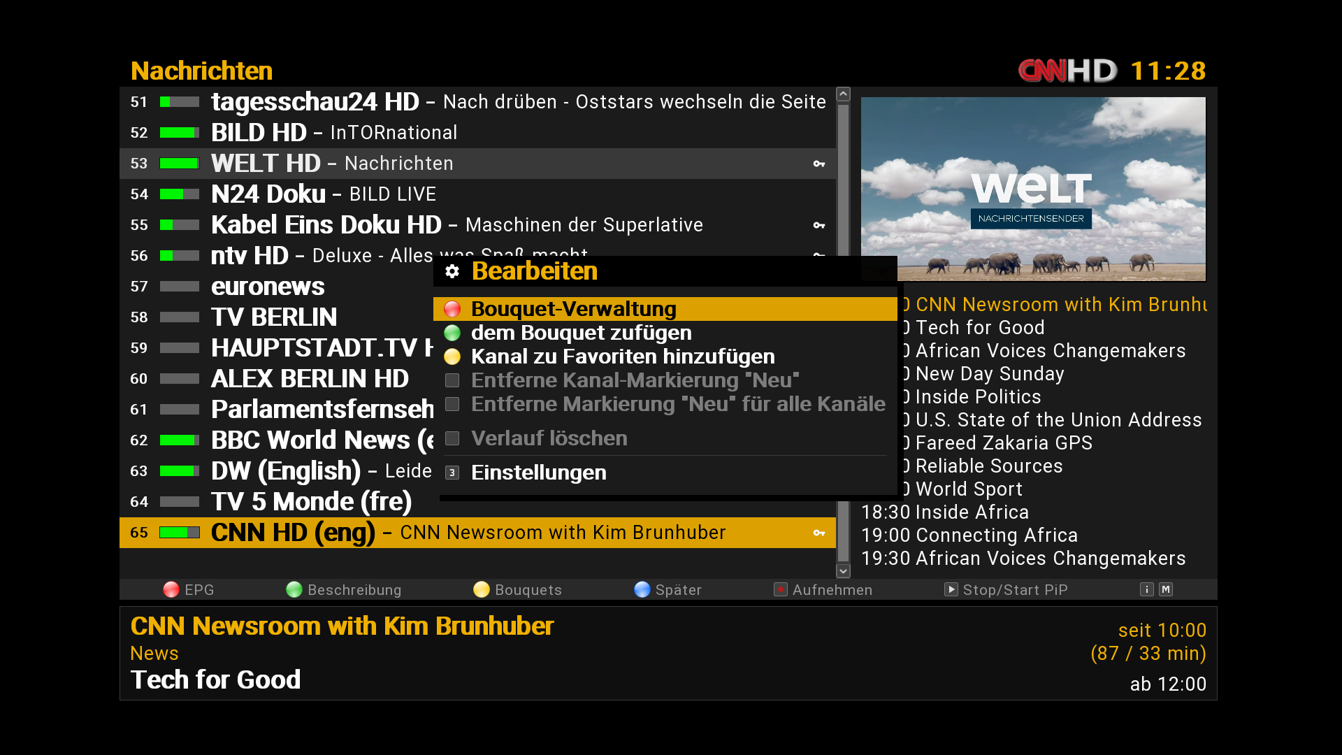 PS: wenn wir schon bei "Wünsch dir was" sind, ich hätte zB gerne unten bei Now/Next das Now 3zeilig, also mit 2 Zeilen für die Sendungsinfo. Ich weiss zwar nicht, wie genau das aussehen würde, aber manchmal wünschte ich mir dort einfach längere Infos zur Sendung.