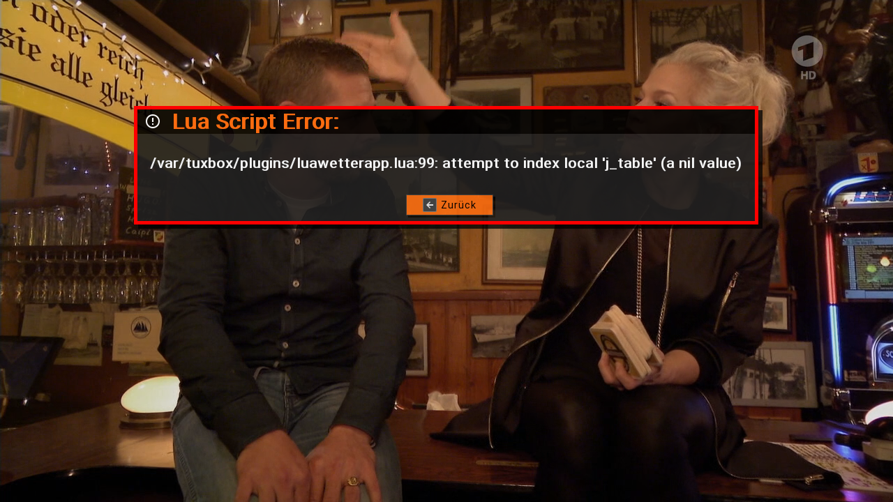 Hallo , habe seit einer Woche auch diese Error-Anzeige bei der Lua Wetter App , manchmal , nach neuer Installation der heruntergeladenen App von DBox2World , klappt es kurz , am nächsten Tag wieder nicht .