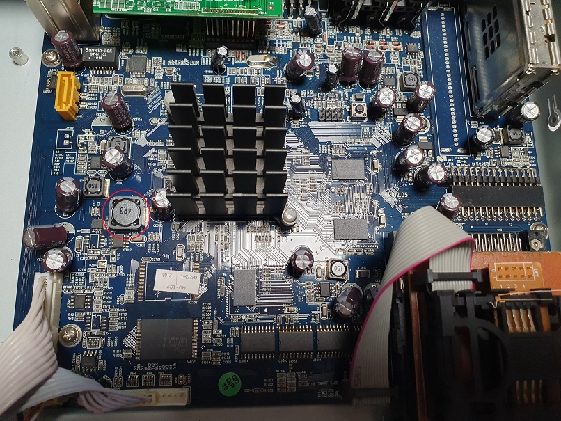 Der IC darunter. Aber die Drossel die Du eingekreist hast solltest Du auch mal nachlöten. Die Lötstellen lösen sich nach vielen Jahren schon mal.
