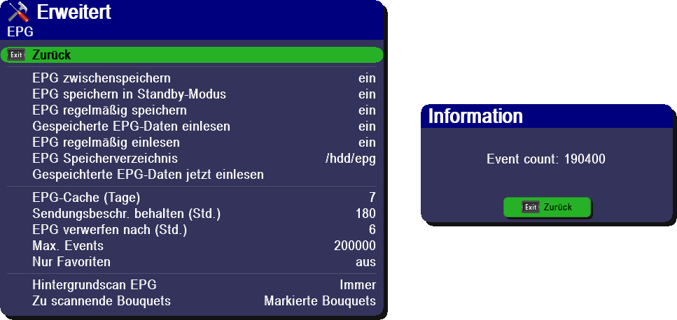 Nachdem ich die Max.Events erhöht habe , ist der EPG in allen markierten Bouqets nun vorhanden .