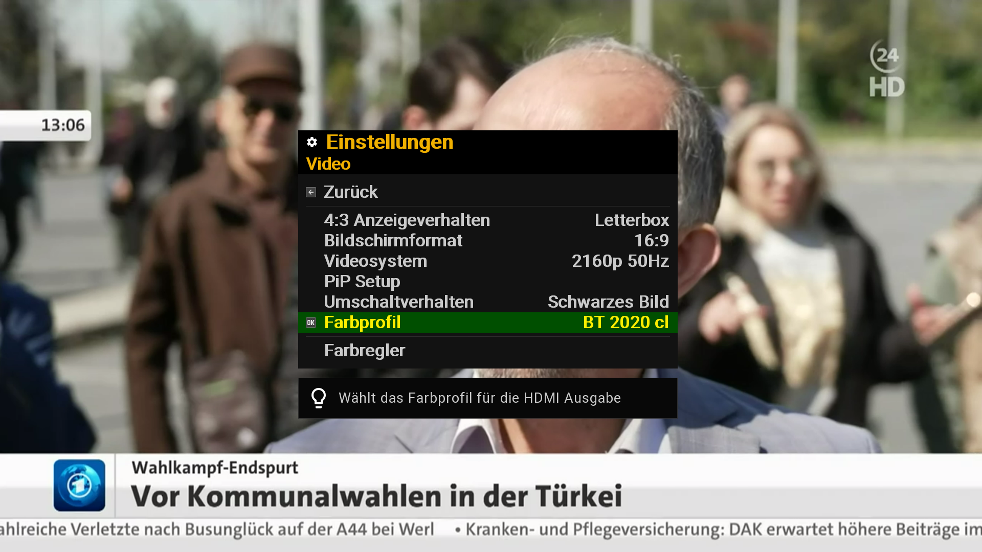 Tanner Dein Beispiel ist etwas unglücklich gewählt. Du solltest dann schon einen HDR tauglichen Sender einstellen und keinen mit 720p und SDR.