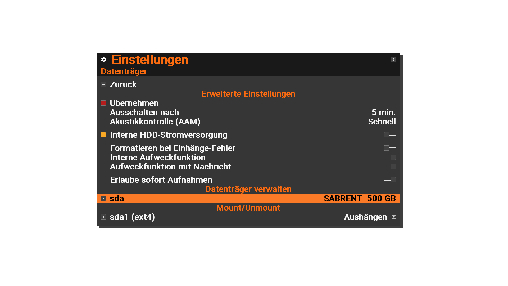 Da siehst, ob die HDD verfügbar ist und kannst auch von da aus mounten.