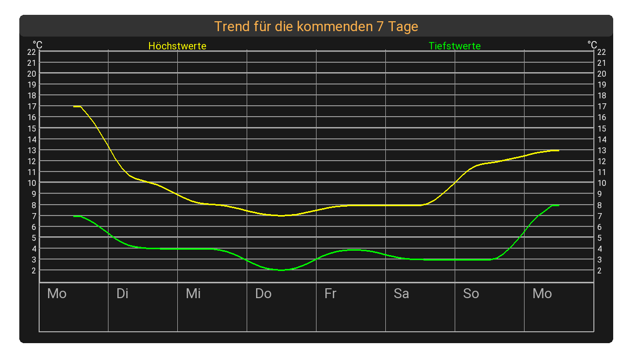 supi - danke. da fehlen aber noch die jeweiligen daily-icons unten im feld bei den wochentagen. kann man das auch noch fixen?BPanther hat geschrieben: ↑So 9. Mär 2025, 11:14 Ist recht einfach zu beheben. Man schaue mal in die parser.c. Dort einfach mal nach