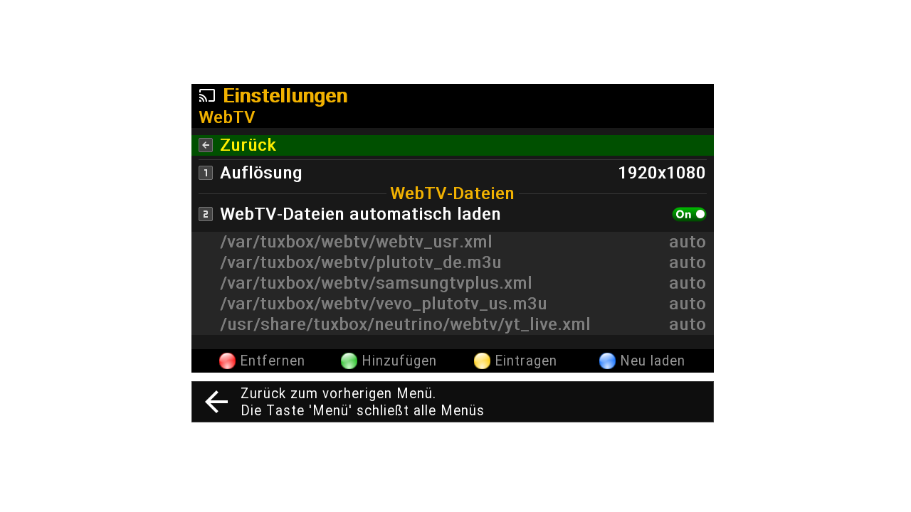 steht webtv_xml_auto=1 dann werden die beiden WebTV-Verzeichnisse (glaube /var/tuxbox/webtv, /usr/share/tuxbox/neutrino/webtv) noch automatisch ausgelesen und alle playlisten darin geladen (hier)