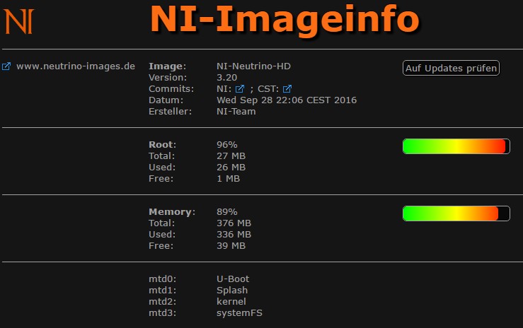 Momentan zeigt meine Box Root: Total: 27 MB / Used: 26 MB und Free 1 MB bei 96 % Belegung.
