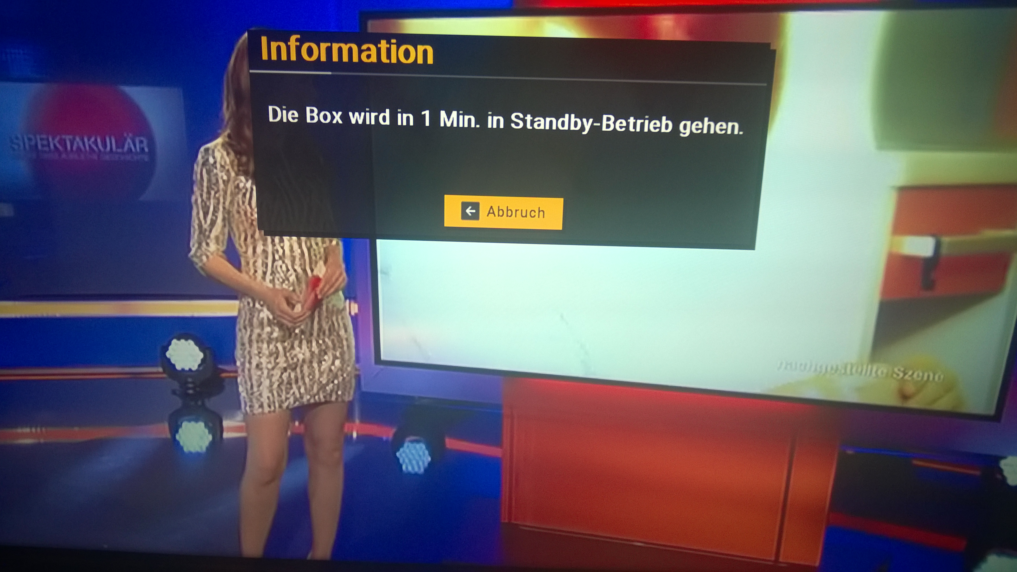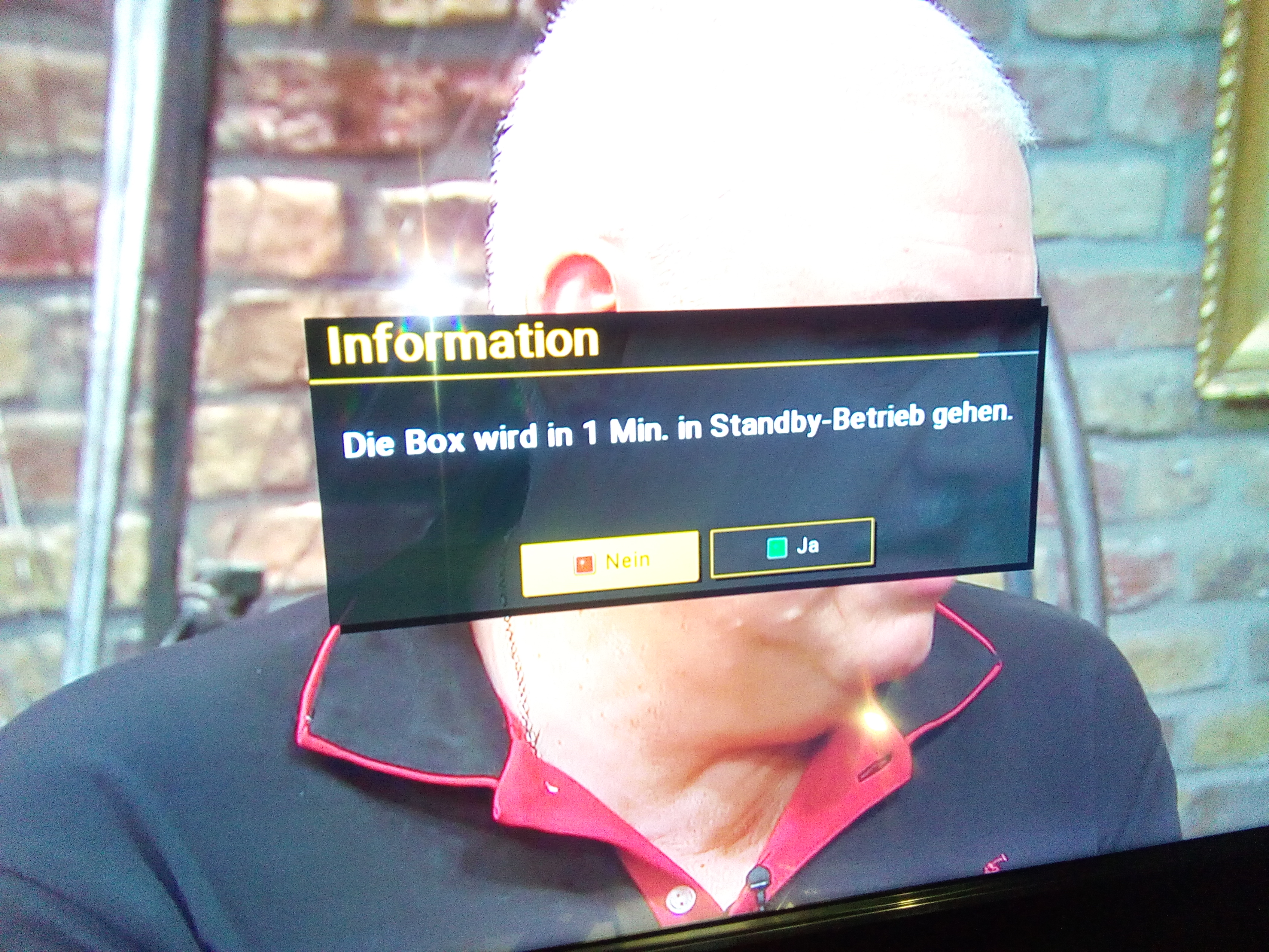 "Die Box wird in 1 Minute in Standby gehen."