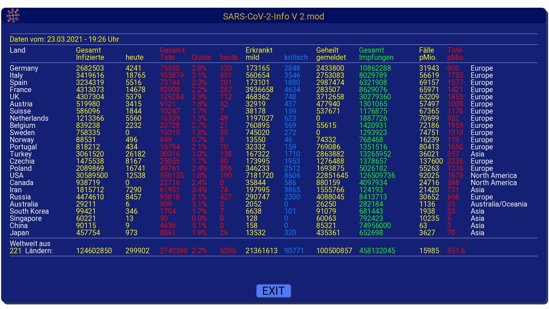 [Plugin] Corona-Info V2.43: Übersicht Fallzahlen Länder