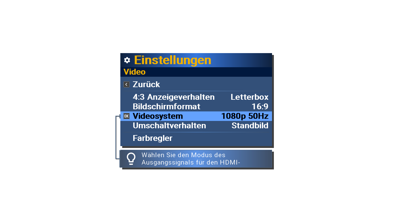 es sollte noch den Abschnitt " HDMI " geben für den HDMI-Ausgang ...