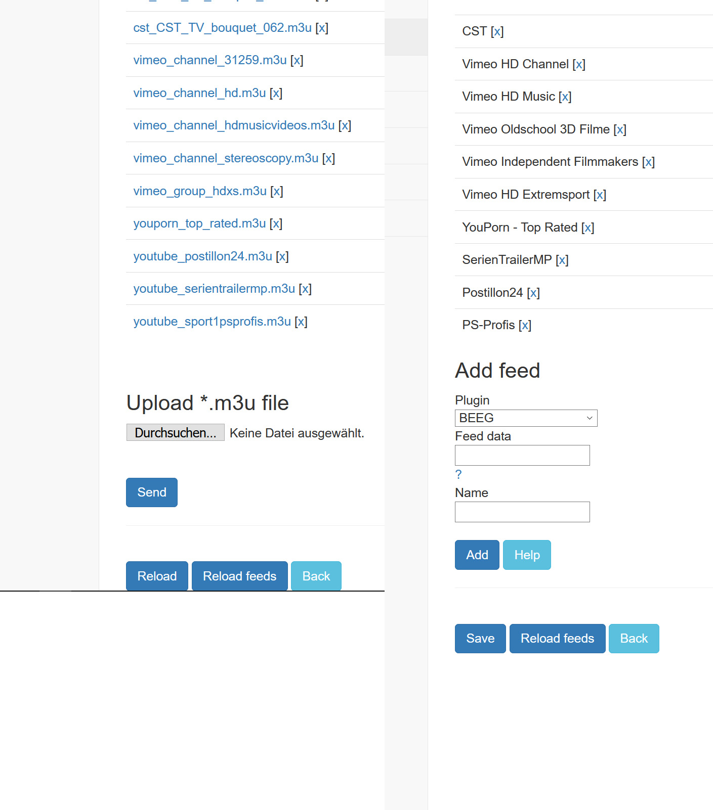 Danke für die Anleitung. Hab jetzt mal die feeds.lua angepasst. Sind diese zusätzlichen Feeds denn bei Dir in der Playlist zu sehen? Also hier:
