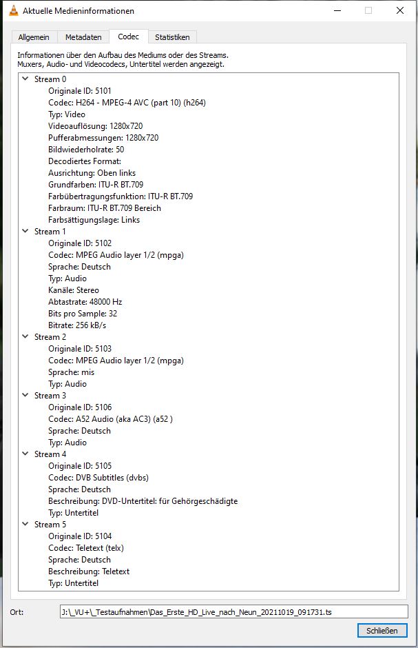 VLC zeigt mir keine Untertitel an, aber in den Daten werden zumindest die richtigen Pids angezeigt: