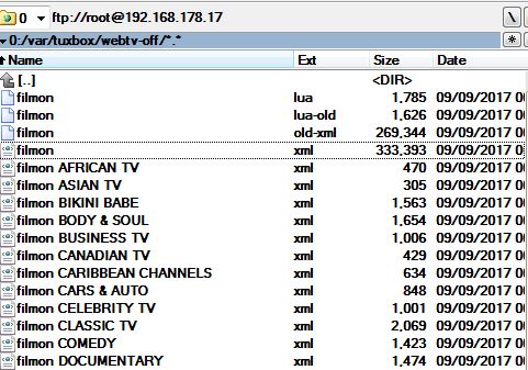 Auf der Trinity-Client-Box habe ich in einem webtv-off-Ordner verschiedene filmon.xml-Dateien die alle ein Datum von 2017 haben, aber die will ich ja gar nicht laden, die werden mir auch nicht angezeigt.