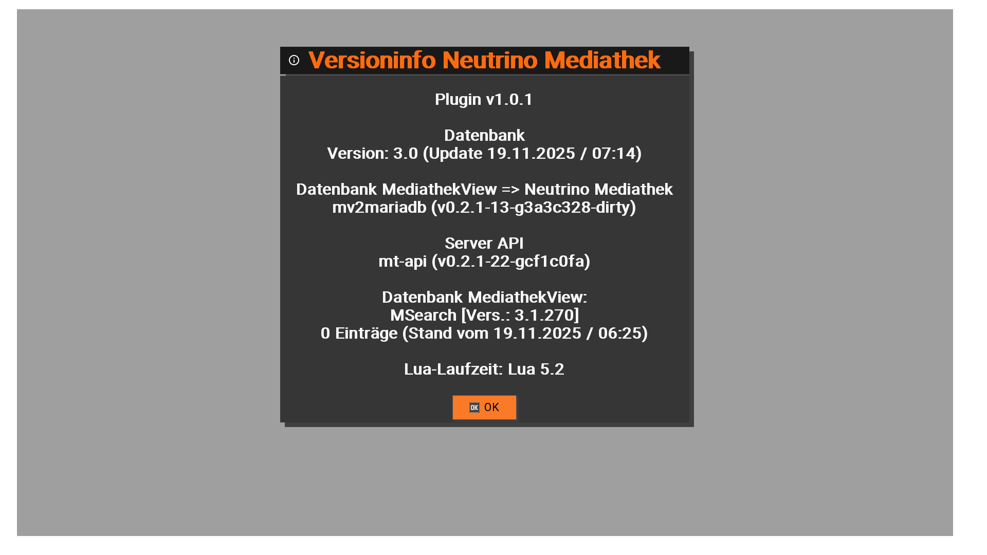 Danke. Ich probiere es jetzt nochmal mit der VU+ Duo2SE aus. (die ist ja in Sachen Neutrino-Mediathek etwas zickig).