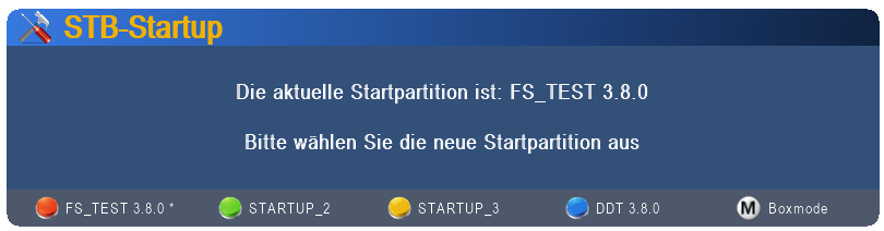 im stb-startup.lua mal die Menu-Taste drücken, dann kannst du Boxmode 12 auswählen, das sollte eigentlich schon seit langem funktionieren...Das NI-Image bietet zum Beispiel keine Möglichkeit, ein anderes Image im Mode12 zu booten, das geht bei mir nur mit OpenATV und OpenHDF