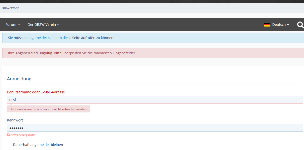 Fehlermeldung