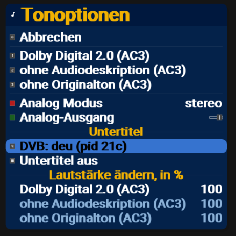selectSubtitle sagt eigentlich schon alles,da es aber keinen menü-punkt gibt um was zu selektieren / aktivieren