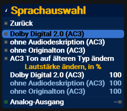 Ton-Optionsmenü Live (grüne Taste):