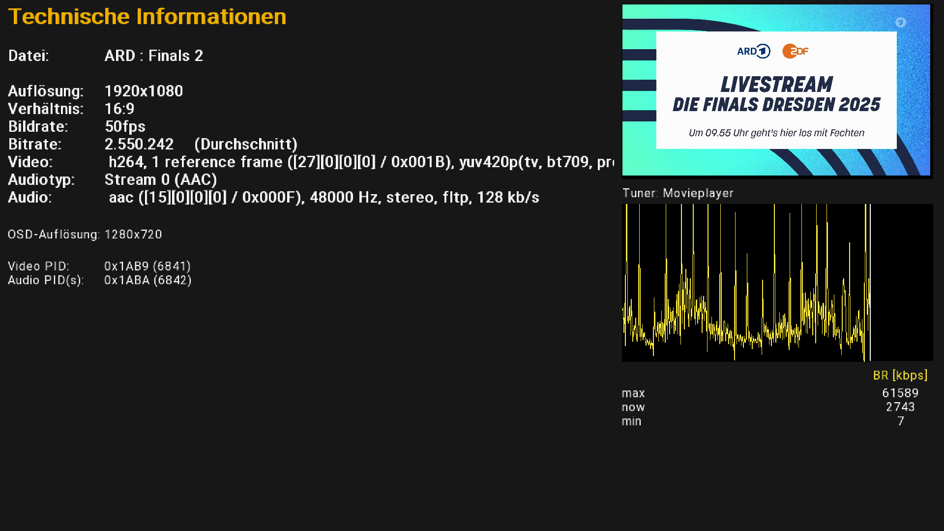Gorcon hat geschrieben: Fr 1. Aug 2025, 08:57 Es hilft wirklich nur das Plugin bestbitrate weg zu lassen und dann mit 640x360 zu schauen. :unamused: