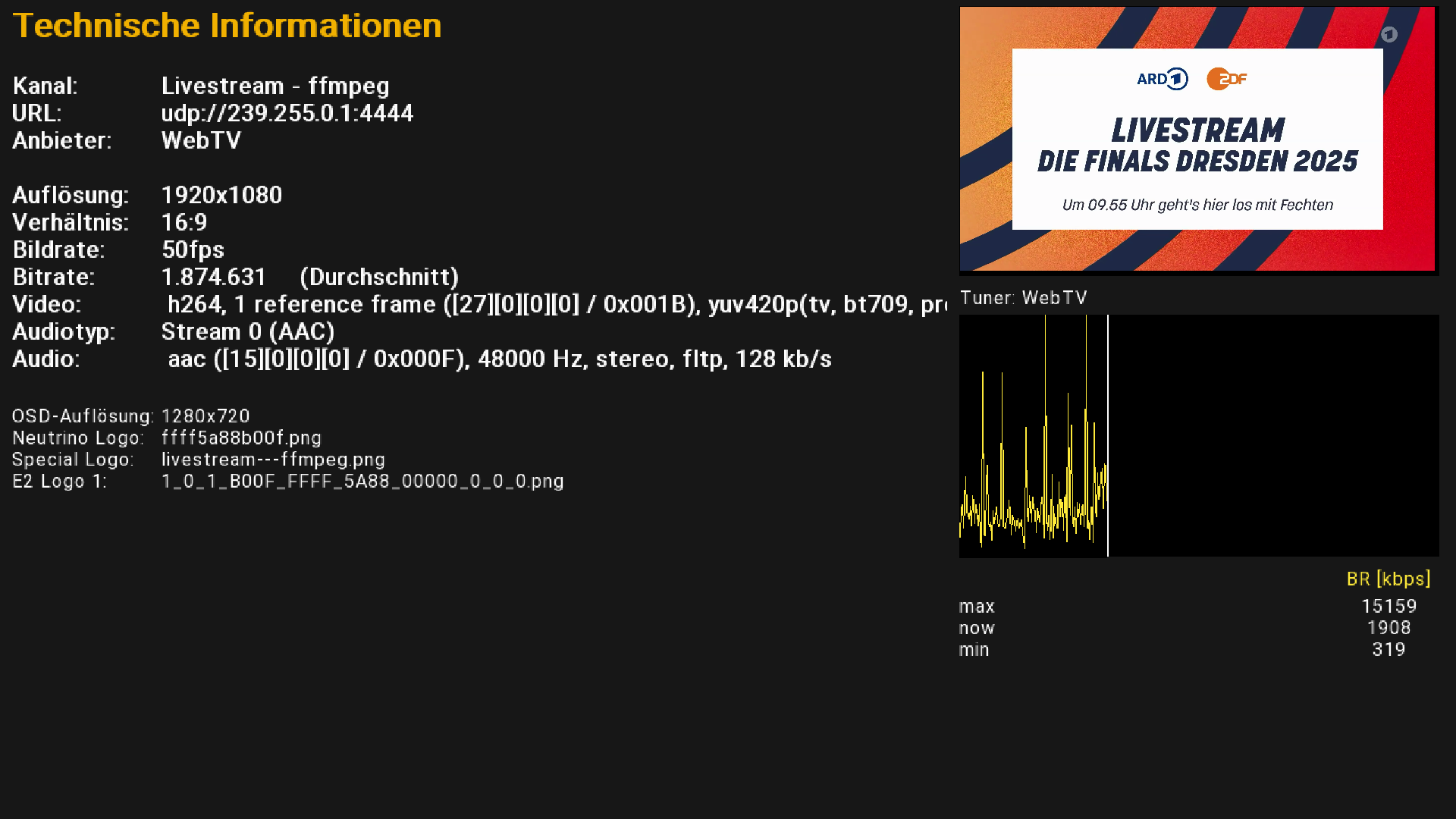 Gorcon hat geschrieben: Do 31. Jul 2025, 18:11 Leider spinnt bei den meisten Sendern wieder das Plugin bestbitrate.m3u8.lua so das Kanal nicht verfügbar kommt. (beim ersten läuft es).