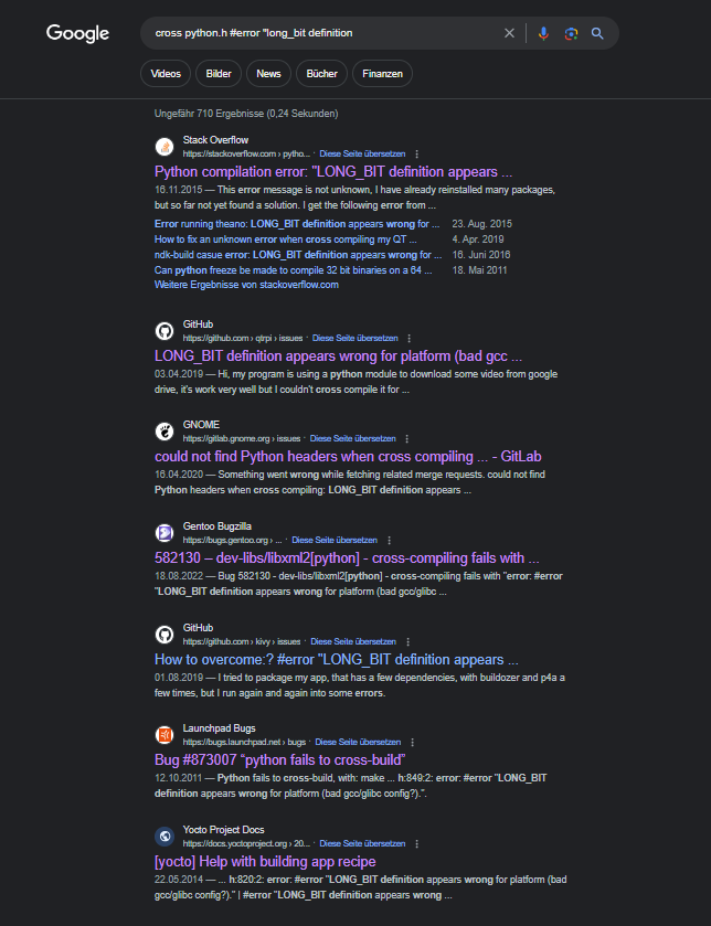Ich hab bei host-python auch schon mit --build= und --host= rumgespielt. Hat auch nichts gebracht.