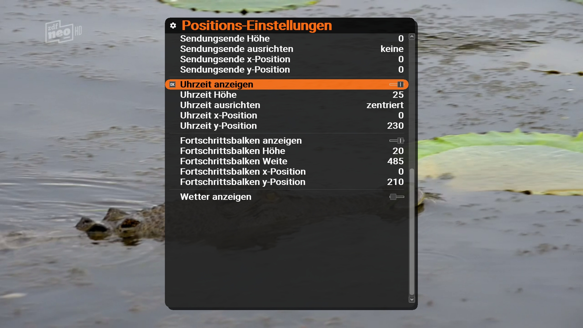 Mit viel spielen habe ich jetzt wenigstens noch den Vortschritsbalken, die Uhr (obwohl eingeschaltet) bekomme ich aber nicht.