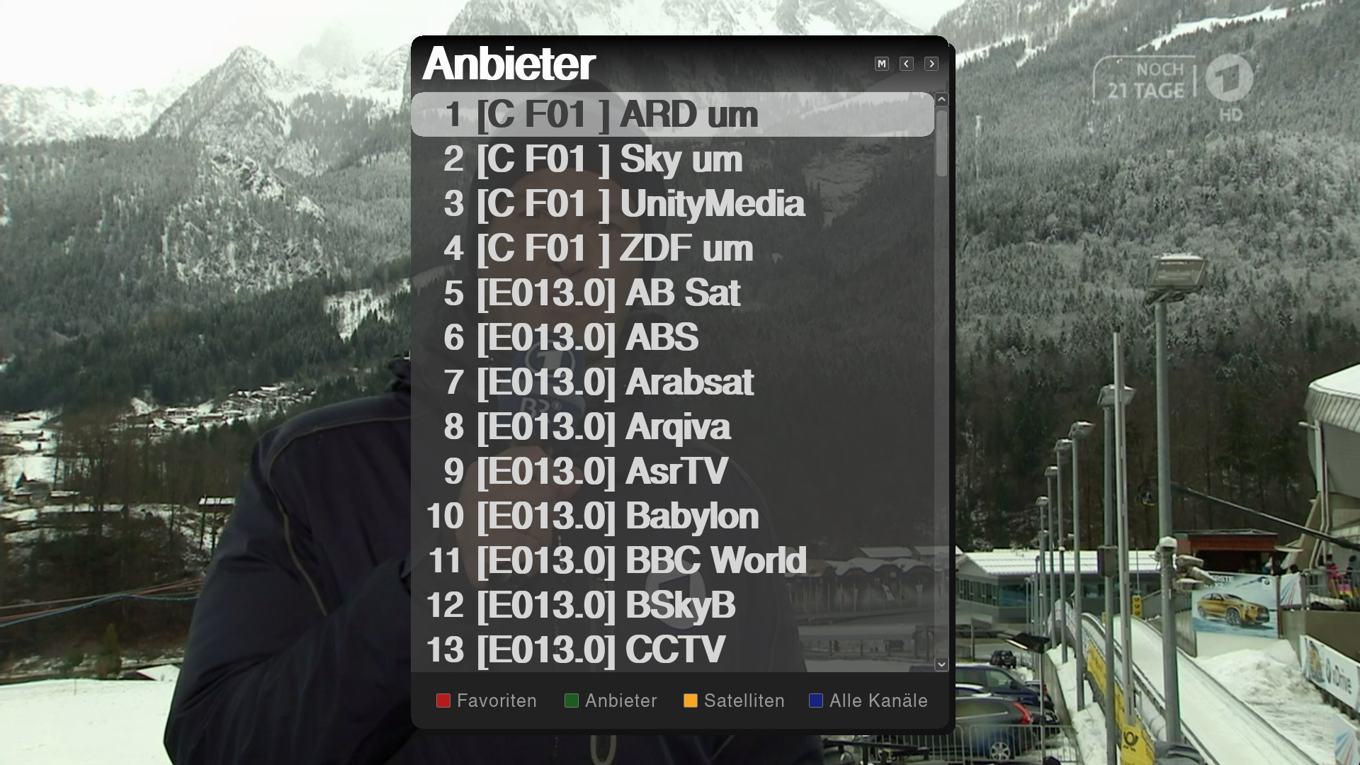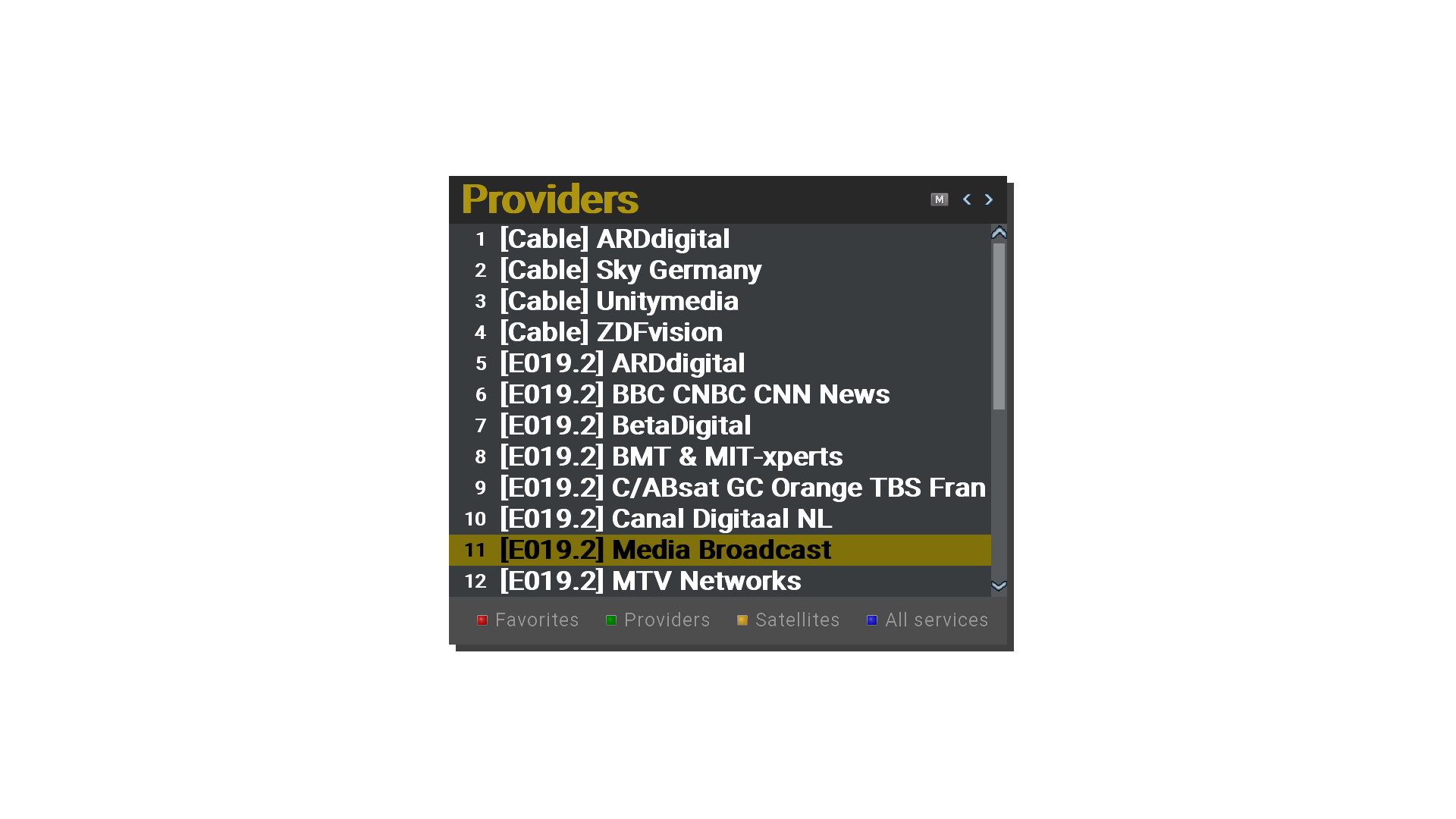 Jetzt wird in der Infobar der Providername der Kabel-Bouquets aber nicht mehr erwähnt, es stehen nur die technischen Daten dort, also Kanal, Frequenz, Modulation und nur am Ende der Name des Kabelanbieters (in meinem Fall steht da Uniiy NRW). Und in der Providerliste (OK > GELB > GRÜN) gibt es die Kabel-Provider auch nicht mehr, die Sender stehen jetzt alle unter "Unknown"