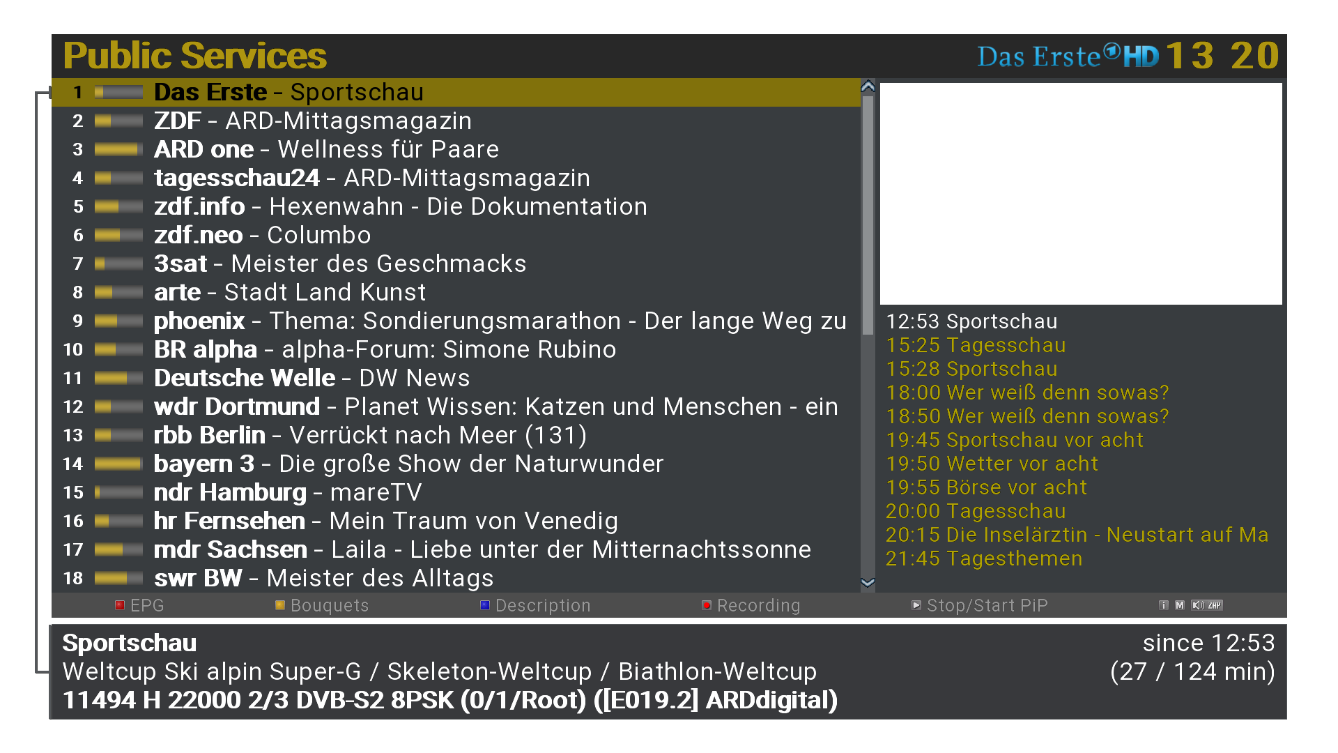 Es hat sich noch was geändert in der Kanalliste (1x OK drücken) mit den technischen Informationen: