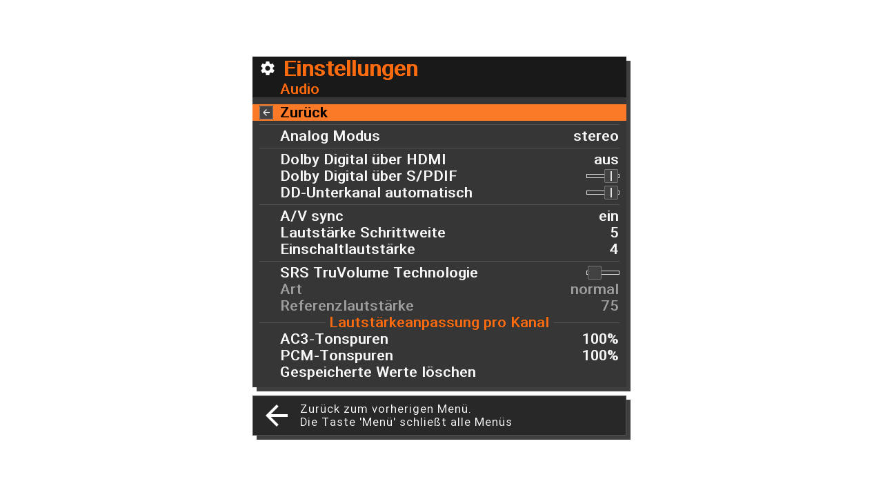 Die Audioeinstellungen sind im Tank und Trinity gleich.