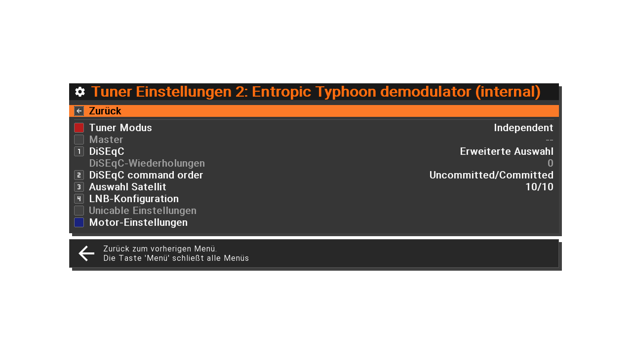 EInfach mal einstellen - die Anzahl der Wiederholungen halt kurz mal unter DiSEqC 1.1 - und schauen was passiert.