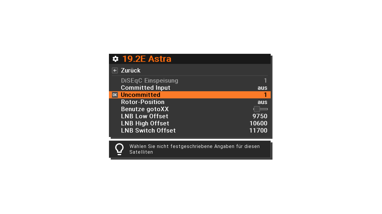 Ich steuere diesen mit der diseqce-Option "Uncommited/Commited" an, leider fehlen mir dann auf Astra ca 200 Sender, auf Hotbird sind es auch sicher um die 400 die fehlen.