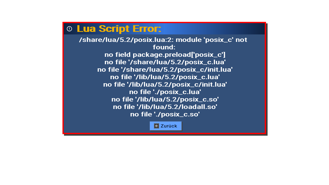 Hatte den Ordner posix in " lib/lua/5.2 " gemeint , das war halt mein Fehler , die Datei muß ja nach " 5.2 " , ich mußte daher keinen Ordner extra anlegen ...