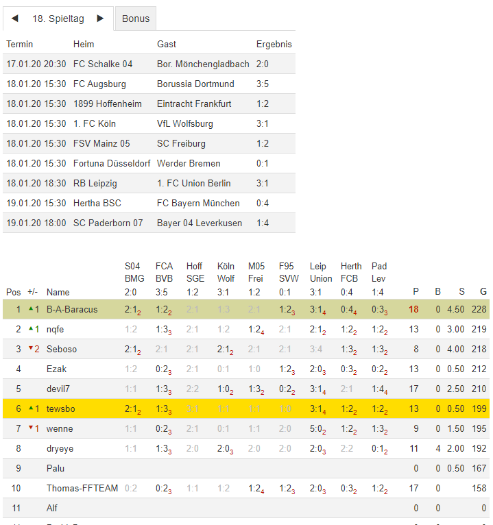 NI-Tippspiel zur BuLi-Saison 2019/20