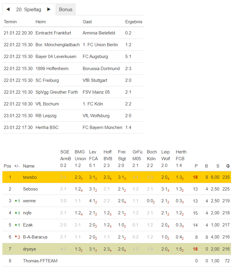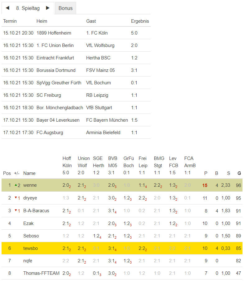 NI-Tippspiel zur BuLi-Saison 2021/22