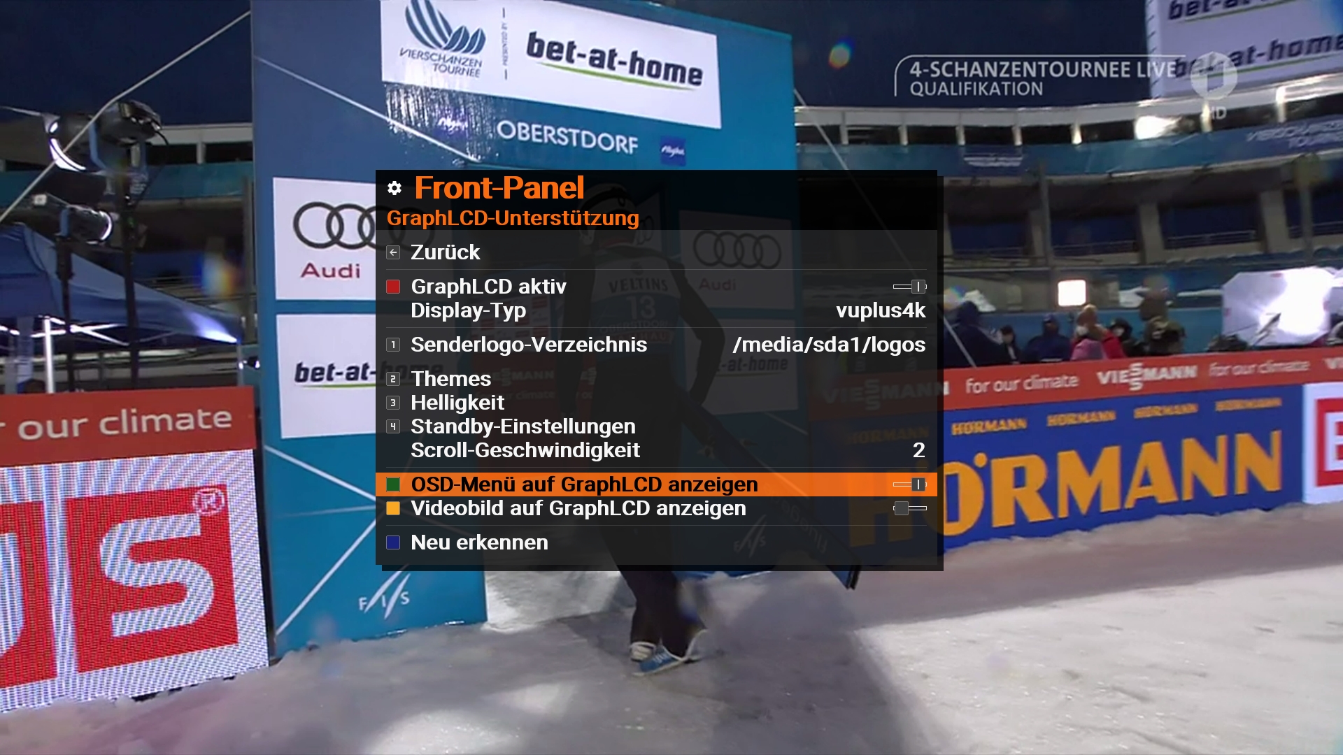 Man bekommt zwar die Balken auf das LCD Display wenn man in den Display Einstellungen die Menü Anzeige für das Display aktiviert, aber das nutzt nichts da der Pegel dort dann auf Null steht (auf dem Display wird er nicht aktualisiert) auf dem TV aber wird er richtig angezeigt und auch aktuell gehalten.