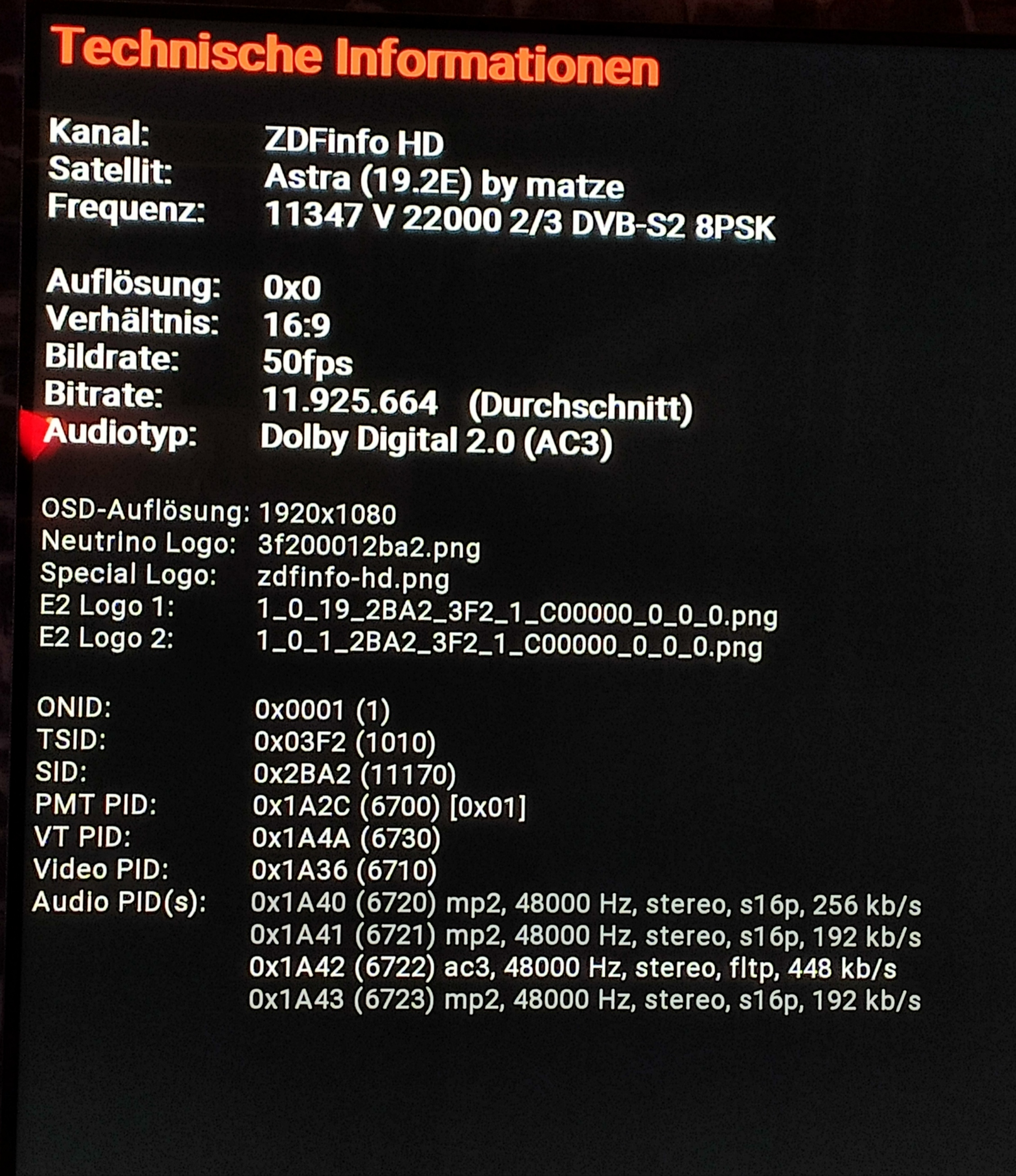 Wie gesagt, das OSD und alles sehe ich ja vom Neutrino...