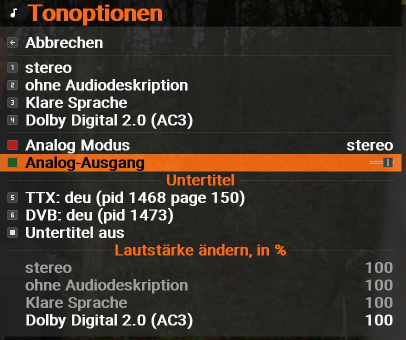Wenn ich einen Sender mit AC-3 Tonspur (egal ob 2.0 oder 5.1) eingeschaltet habe und in den Audioeinstellungen AC-3 Durchleiten aktiviert habe habe ich am TV keinen Ton mehr. Schalte ich auf eine MP2 Tonspur um, ist der Ton da.