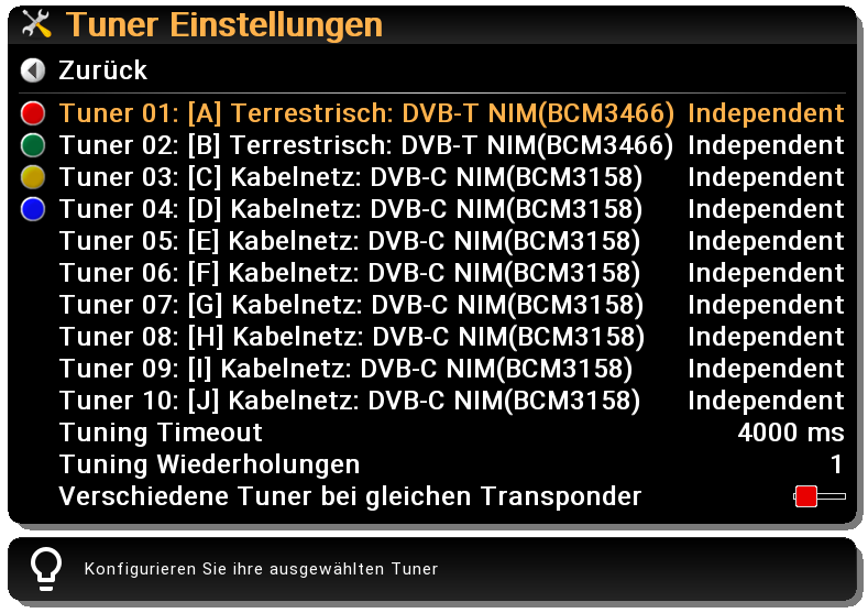 der nächste Tuner ist der DVB-C weiter als C bis J und das unter Enigma und Neutrino / NI gleich